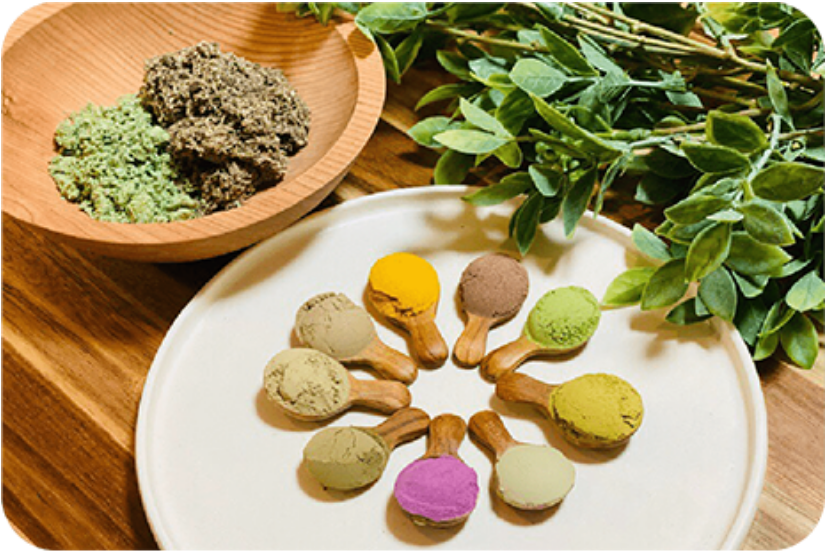 発酵玄米エキスを織り混ぜたよもぎとくまざさ、それから8種類のハーブで身体を蒸し、芯から温め、腸内細菌を整える発酵菌がたくさん含まれていているので、腸を整え免疫細胞が作られる環境づくりが可能です。